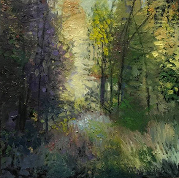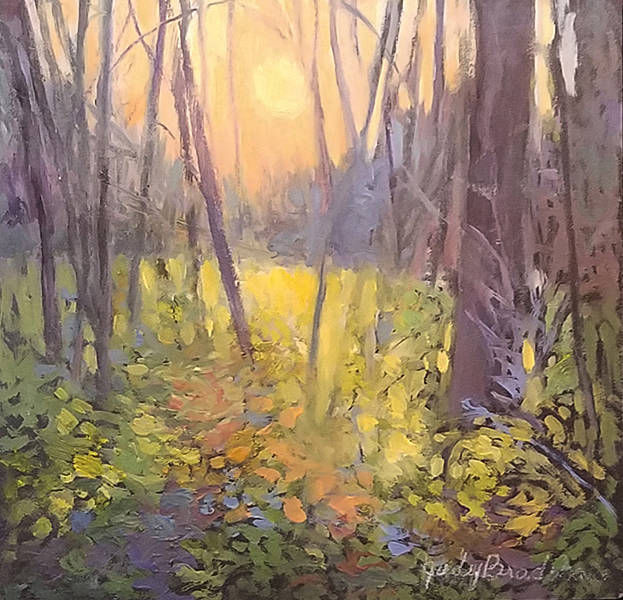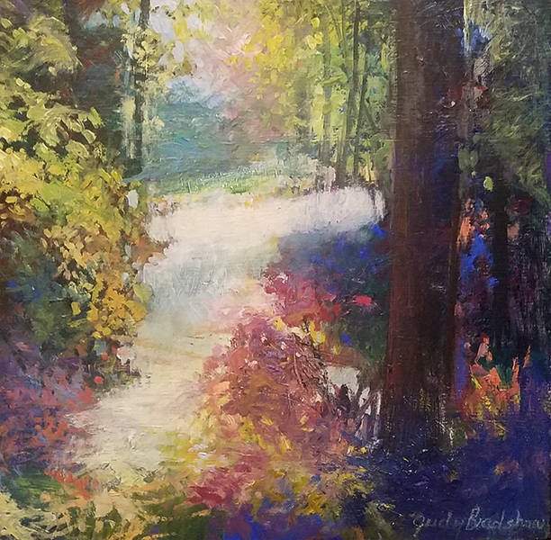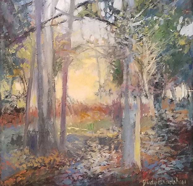 Judy Bradshaw loves the way light illuminates landscape; it has always been her passion. Through the use of color and value she attempts to capture that light. She is especially drawn to woods and trees where the light creates many interesting patterns and textures. Each painting represents a moment in time for her, a place where she stood in awe of the illuminating light.